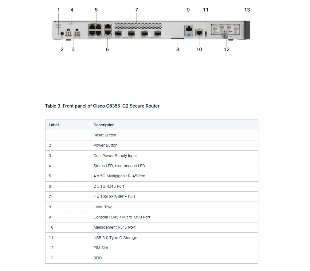 Cisco Part Number: C8355-G2 is a Cisco 8300 Secure Router with 4x10GE, 4x5GE, 2x1GE, and 1xPIM