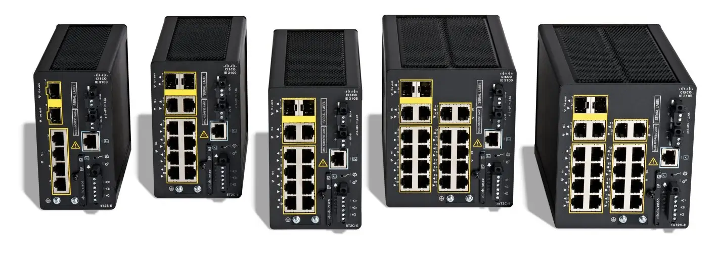 The Cisco Catalyst IE3100 Rugged Series switches boast up to 20 Gigabit Ethernet interfaces, delivering rapid Gigabit Ethernet connectivity in a compact design tailored for a diverse array of industrial applications that demand resilient products. Specifically designed for challenging environments prevalent in manufacturing, energy, transportation, mining, smart cities, and oil and gas sectors, the IE3100 is a robust platform. Its durability makes it particularly suitable for deployments in space-constrained settings like distribution centers, warehouses, and outdoor environments.
