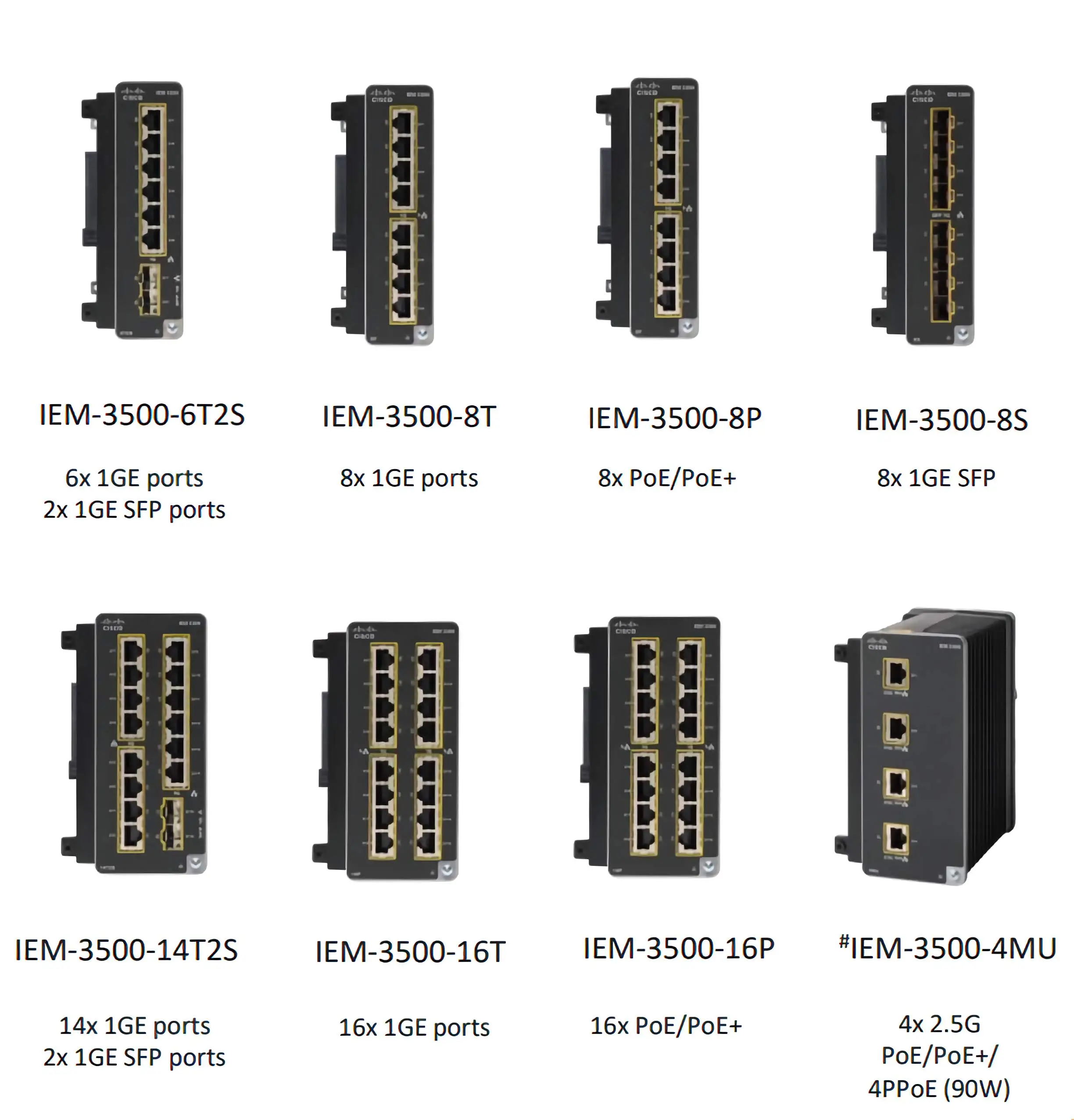 | IEM-3500-8T= | 8 | 8 | - | - | - | 19 |