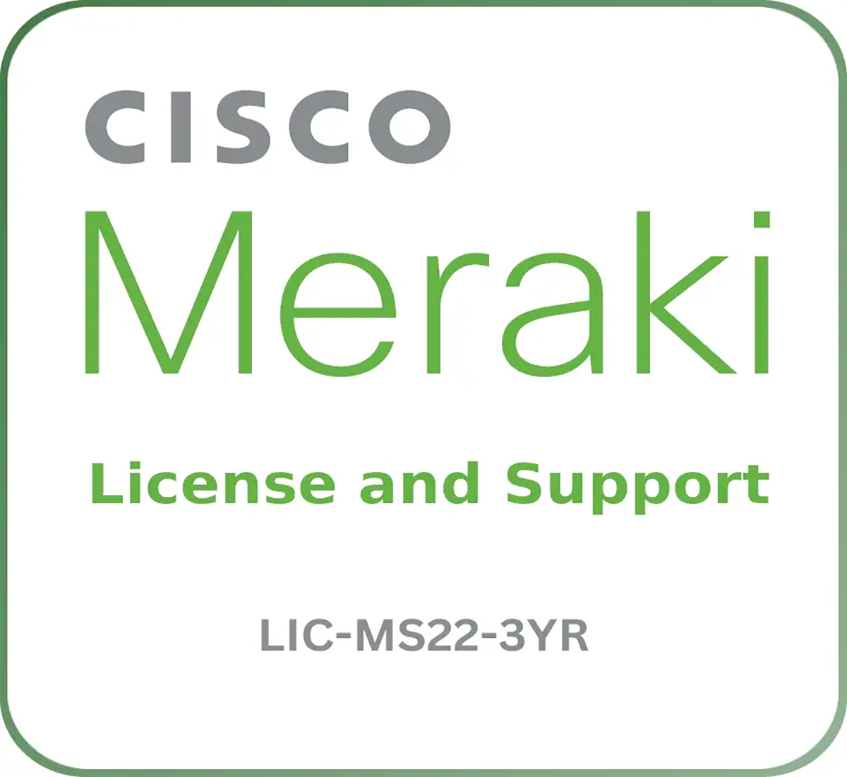 Software Subscription: LIC-MS22-3YR is a Cisco Meraki MS22 Enterprise License and Support, 3 Years